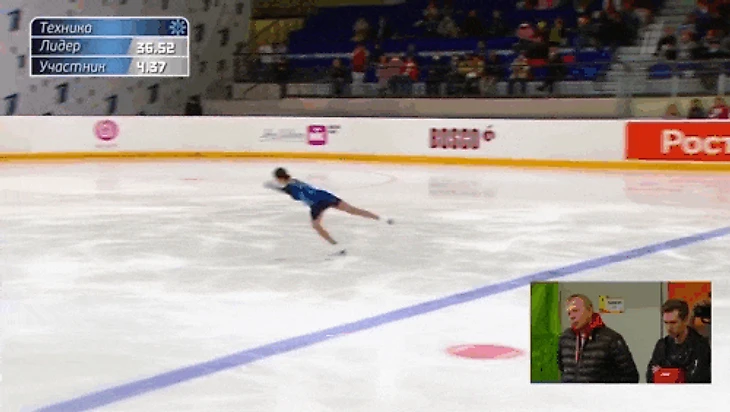 Зато за вот это вращение судьи не поскупились на щедрые GOE – из семи судей четверо поставили +4 и лишь один, Леонид Смирнов, поставил +2, а итоговое GOE – 1.15.