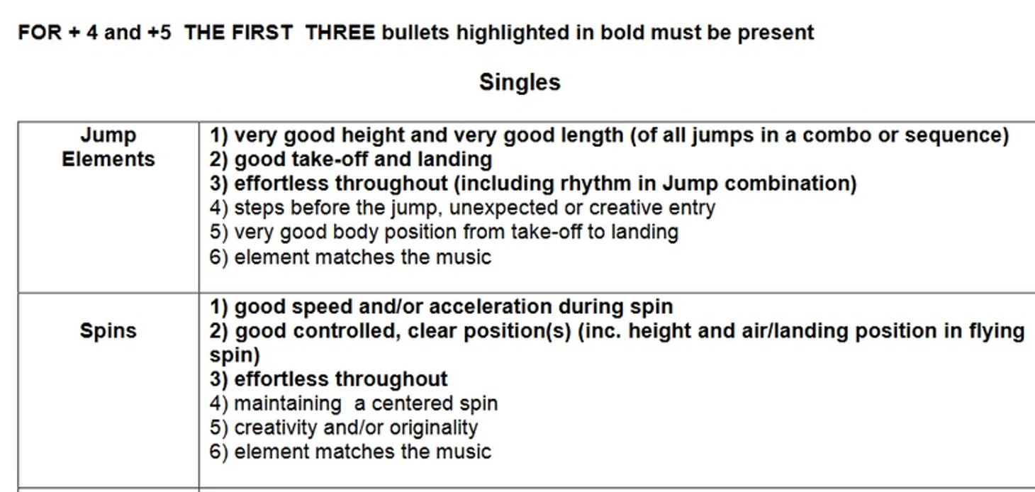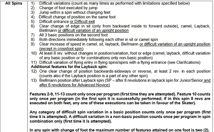 В предыдущей статье рассматривали критерии GOE за прыжки, теперь же критерии во вращении. Они таковы: