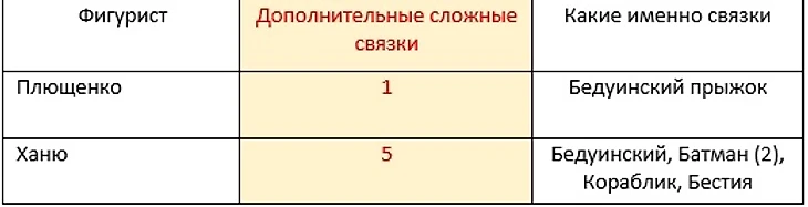 А вот табличка по дополнительным сложным связкам (спиралям, разного рода сложным прыжкам и т.д.) :