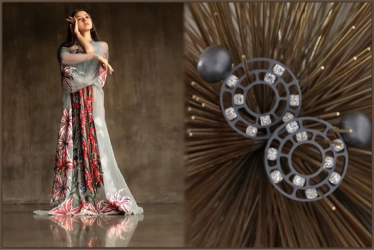 Волшебный водопад воплощен в колье «Миллаа» от Адлера. Он инкрустирован эффектным черным опалом 22,03 карата, бриллиантами грушевидной огранки 7,66 карата, сапфировыми бусинами 22,03 карата, сапфирами-бриолетами, бриллиантами-бриолетами, бриллиантовыми бусинами и бриллиантами из белого золота.
