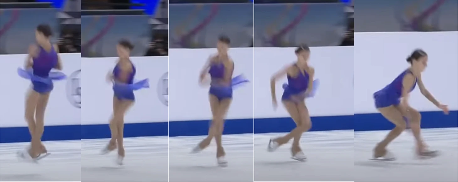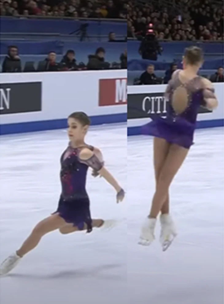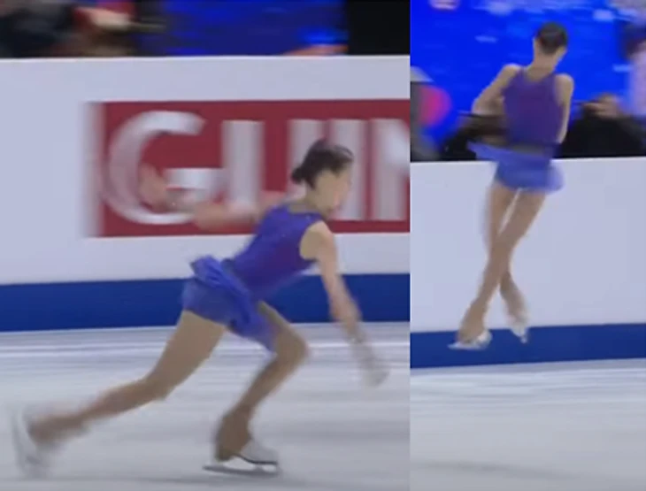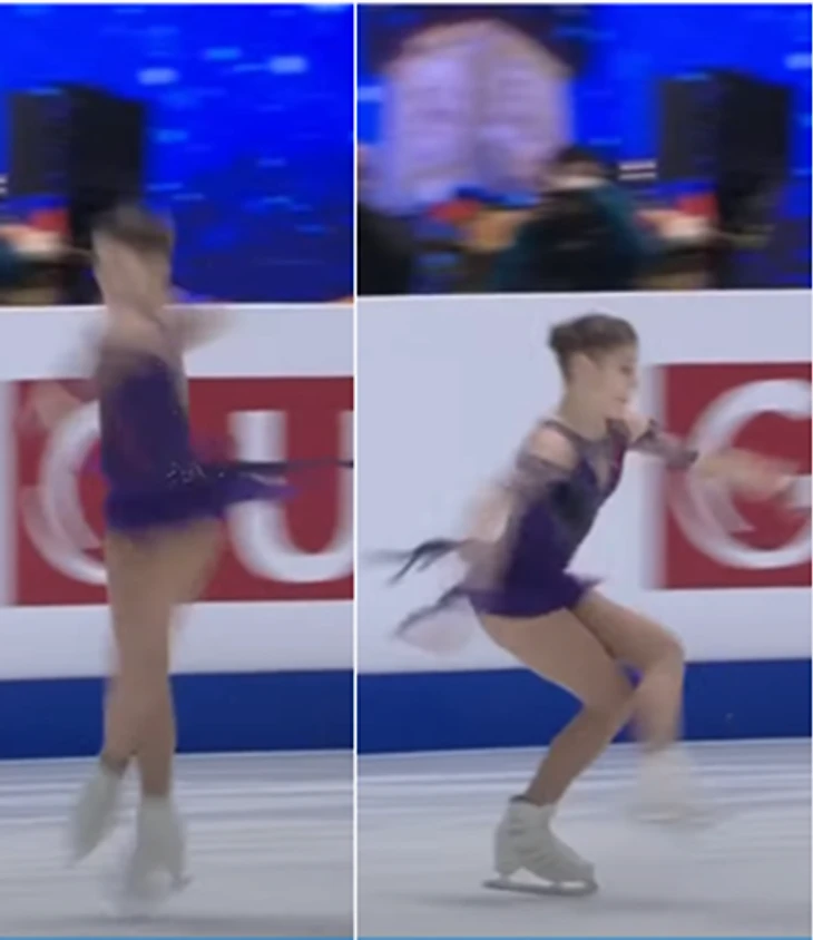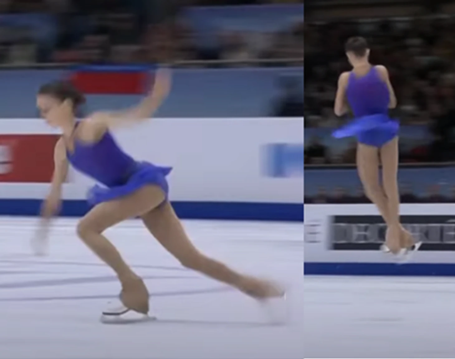 А видим мы, что уже на первом трикселе на грани недокрута. 50/50. Но судья пошел в пользу спортсменки.