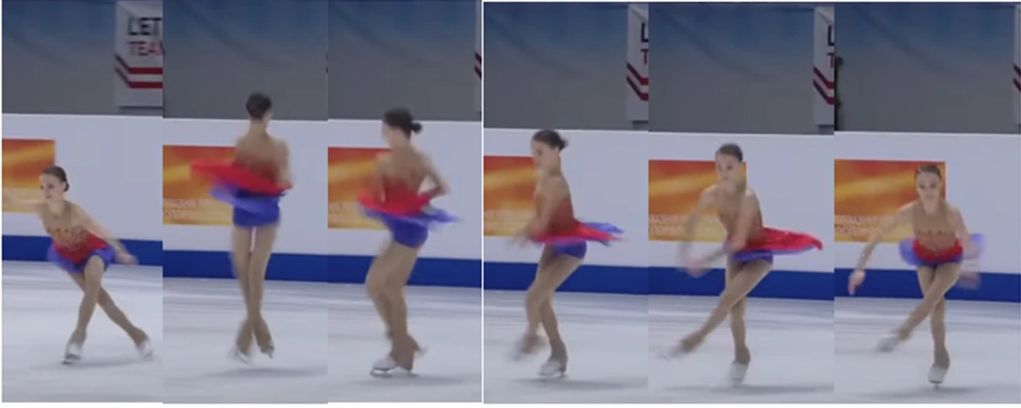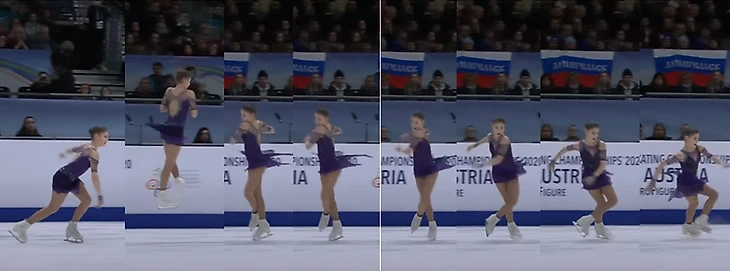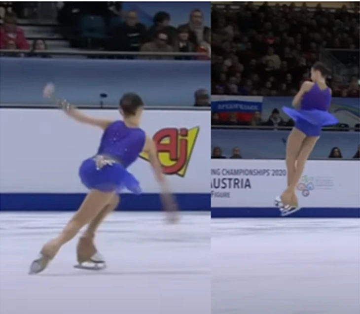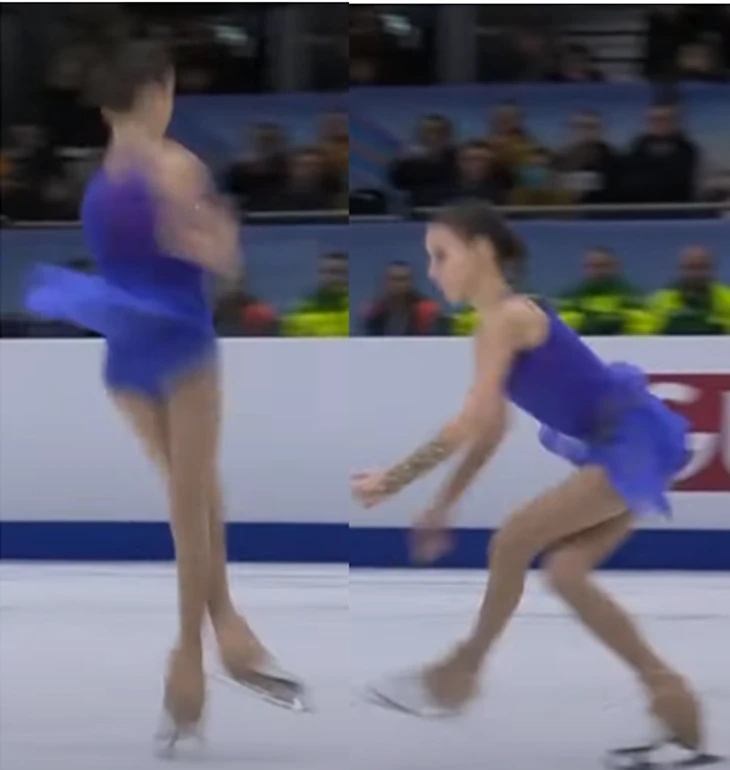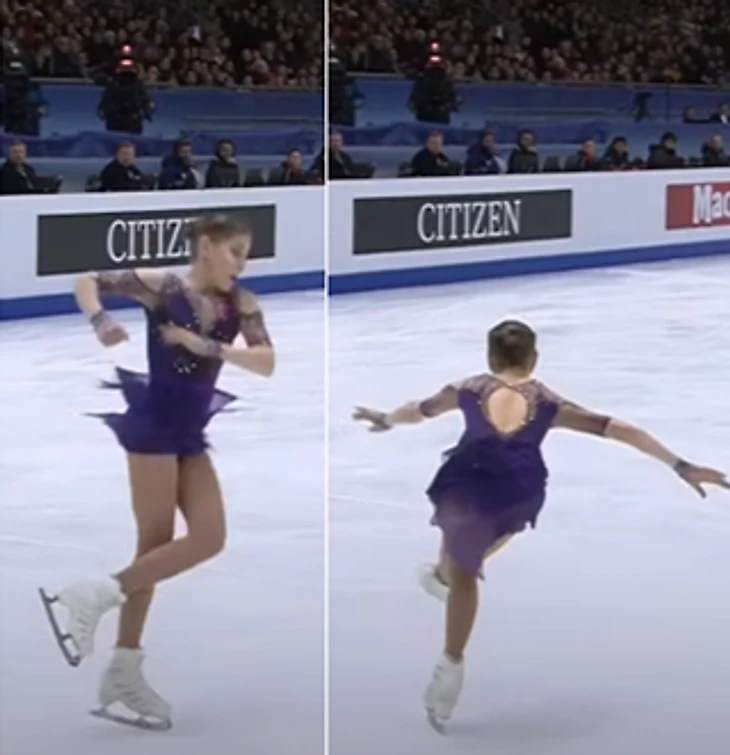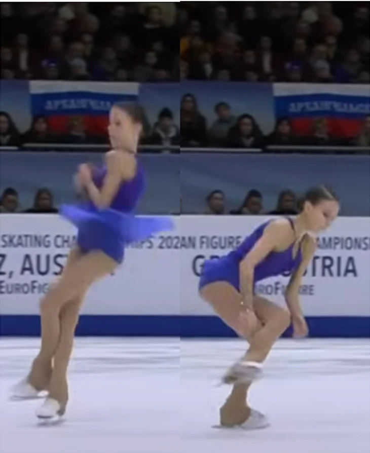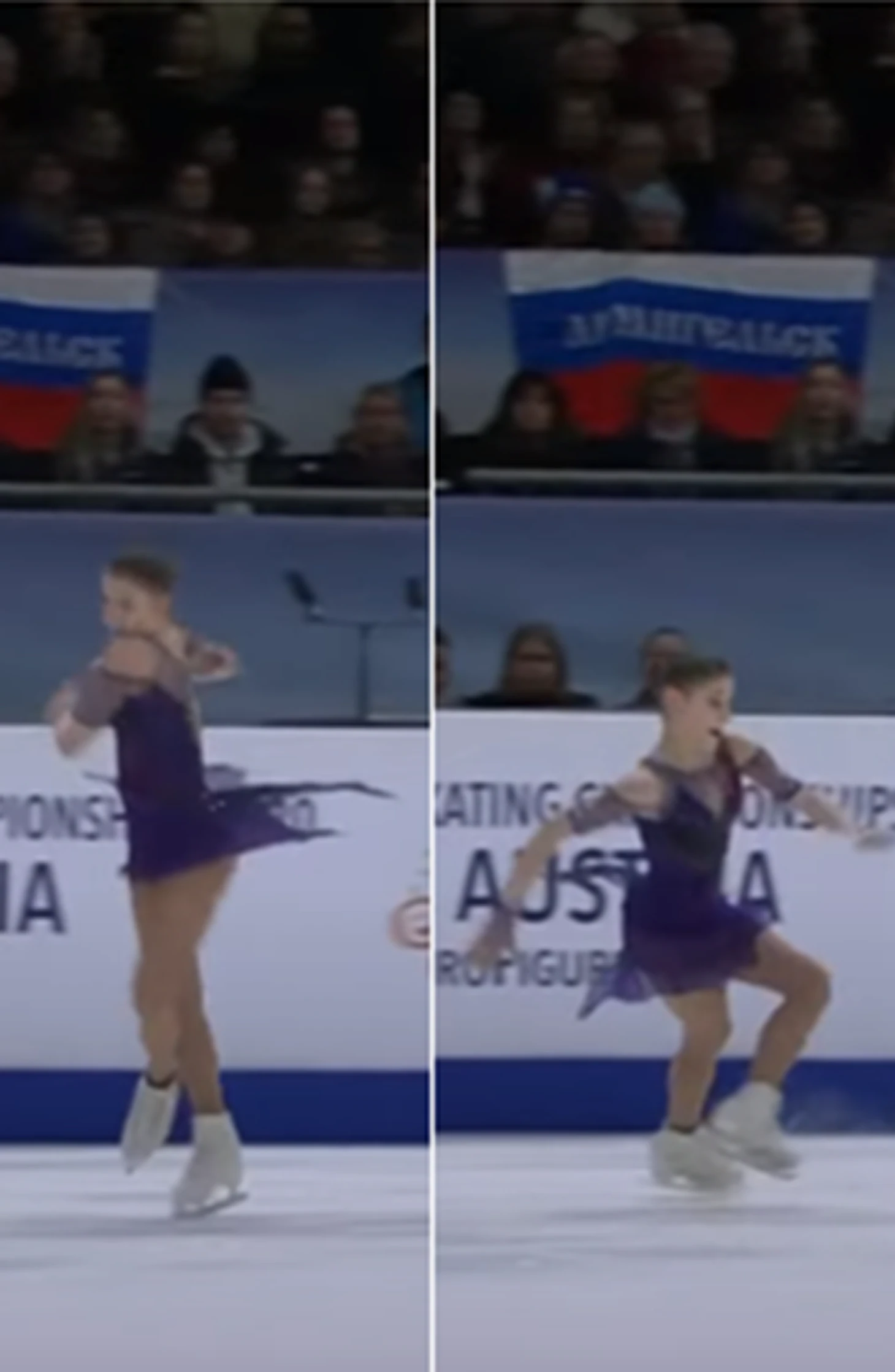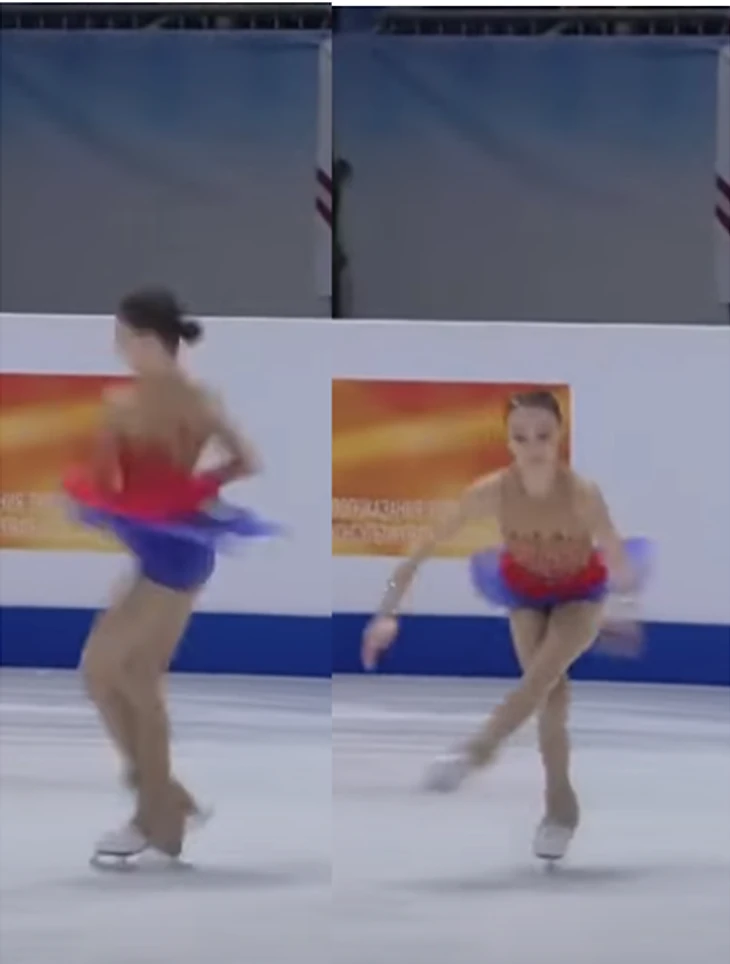 Еще сравнение. 3Л+3Р и 3Л. Тут даже недокрут у Косторной выглядит больше.