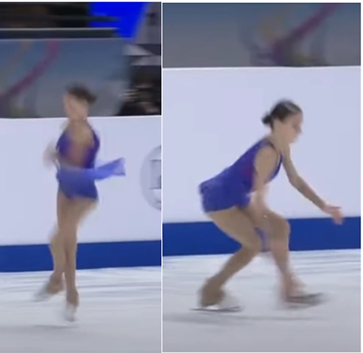 Если в короткой программе обе спортсменки были с чистым протоколом в графе ошибок, то в произвольной не удалось избежать ошибок. У Щербаковой был недокрут в две галки на элементе 4Л с падением, а так же недокруты на каскаде Лутц+Рит и сольном Флипе. Косторная тоже упала, но с тройного лутца.