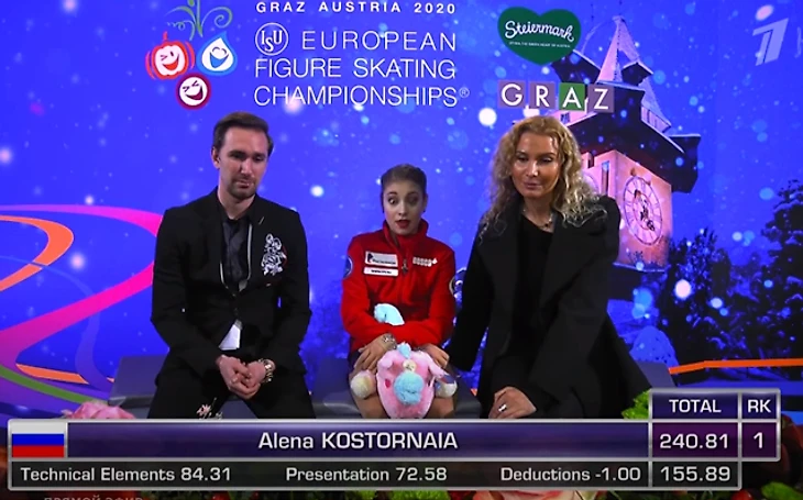 Ну и итог. Каменное недовольное лицо Тутберидзе и виноватое Косторной.