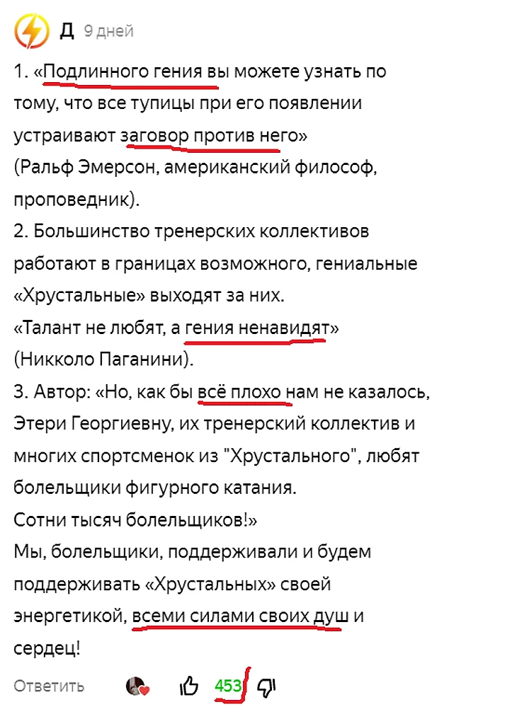Все посты сугубо про то, как мерзкие люди и завистники-злопыхатели обижают Тутберидзе и ее Школу, пытаясь оболгать, умалить достижения. И блогер призывает – защищать Тутберидзе и миллионершу Загитову всеми силами души, абсолютно бесплатно при этом!