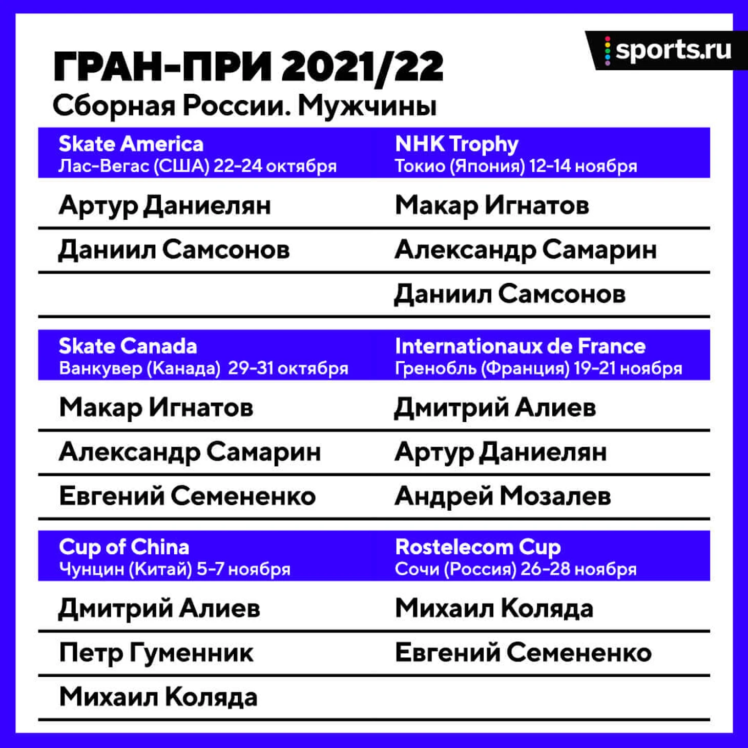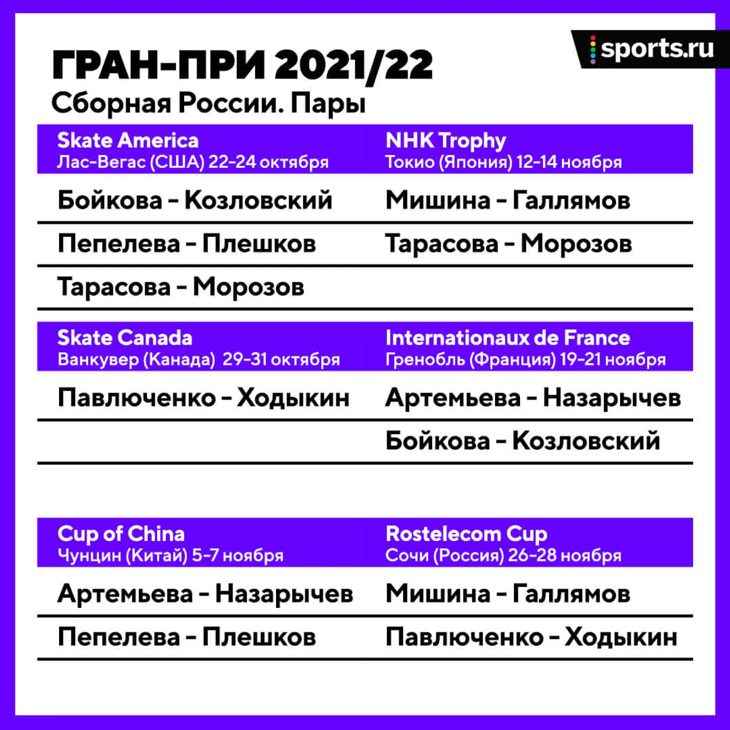 Стало известно распределение фигуристов по этапам Гран-при в сезоне-2021/22.