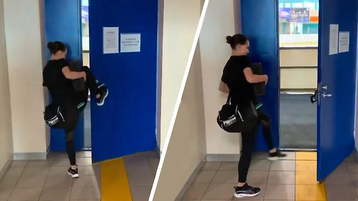 Алина решила открывать двери ногами, совсем не подумав что потом за эти дверные ручки будут руками браться другие спортсмены, сотрудники, и родители детей. Здесь даже не в гигиене дело, а в банальном неуважении к окружающим, к людям которые намного ее старше. Как будто она не знала что старшие люди потом руками будут трогать эту ручку, которую она дергала ногой.