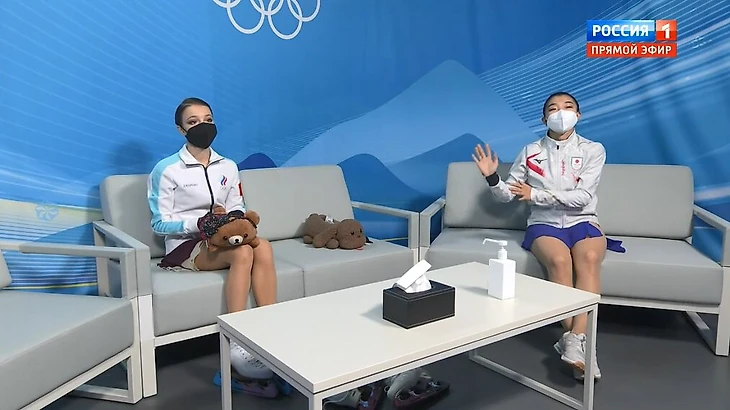 В Пекине-2022 победила Анна Щербакова, и это ее будто не обрадовало. Справа – Каори Сакамото празднует бронзу, слева – Аня – само спокойствие и даже печаль.