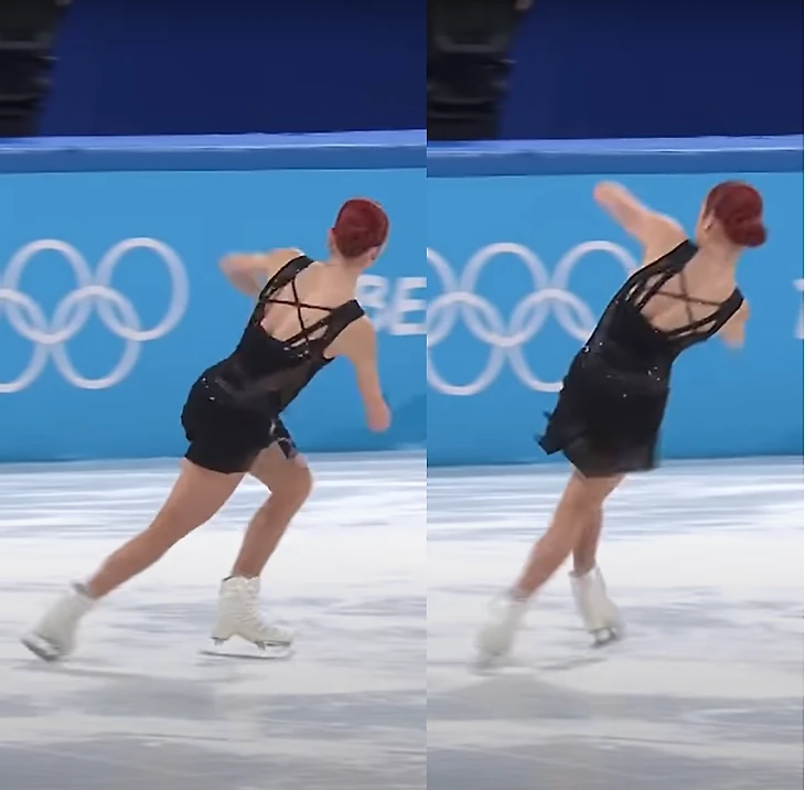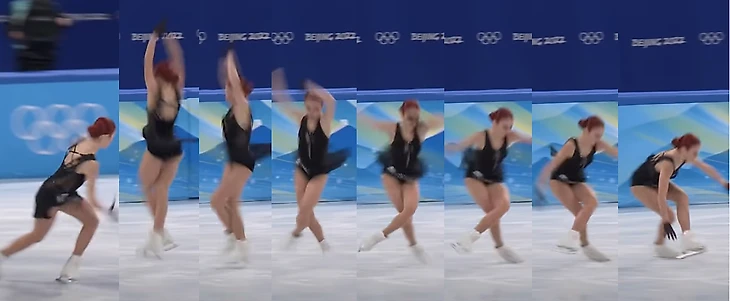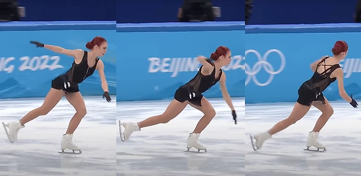 Посмотрим ошибки Трусовой. На вскидку, даже без замедленных повторов увидел две.
