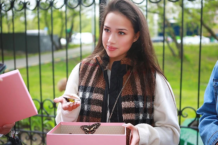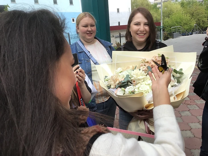 Алина выпустила в небо шарик с номером «19», проведя свои 19 лет и вспомнив все самое лучшее, что с ней происходило в этом возрасте. Ну а потом мы встречались 20 лет: был и торт, и свечи, и «живой салют» в виде бабочек! (один из которых, как мы видели, очень понравился Ноупу 😀)