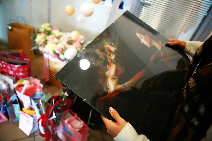 Поздравления и подарки традиционно дарили в «Хрустальном». К счастью, представителям нашей группы тоже посчастливилось быть среди участников этого мероприятия, вручить цветы и наш общий подарок. Спасибо, как всегда, фан-группе Тимзагитова за помощь в организации этой встречи!