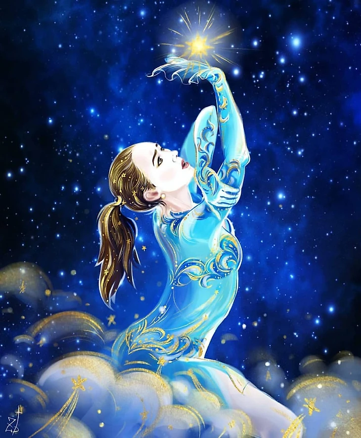 Очень красиво! Примечательно, что для этой работы образ Алины взят из ее юниорской программы "Самсон и Далила", очень любимой многими её болельщиками. Алина вдохновляла, вдохновляет и будет вдохновлять дальше. Потому что она и правда как-будто из сказки, нереальная какая-то...