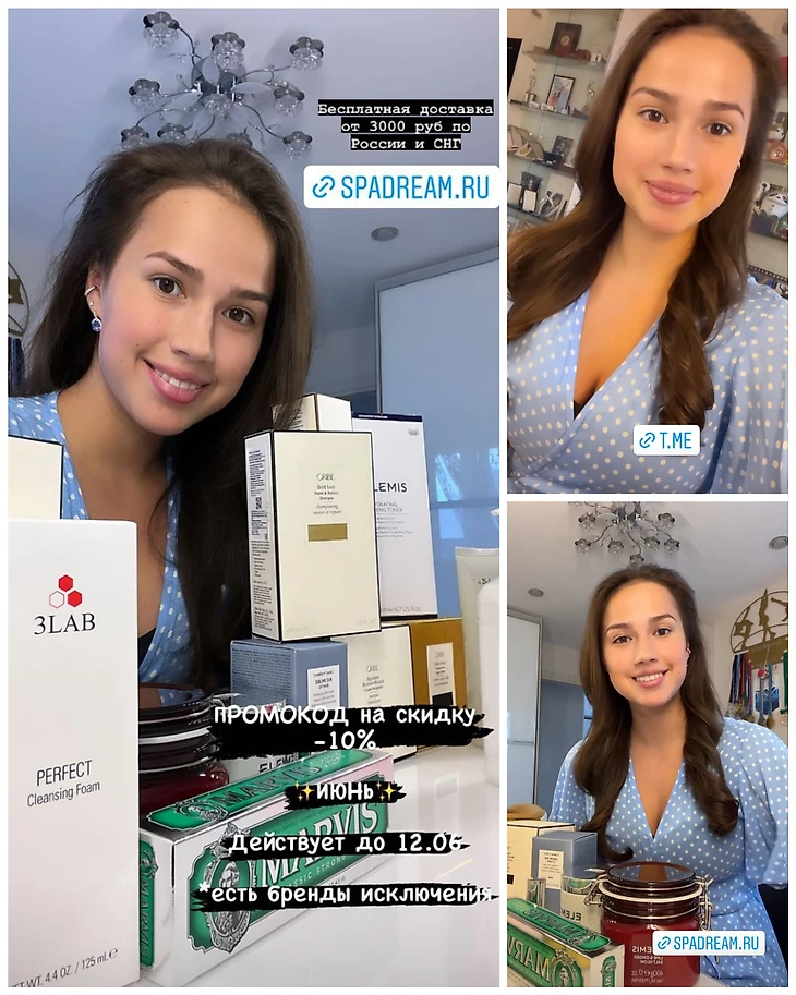 Сторис Алины Загитовой с рекламой уходовой косметики