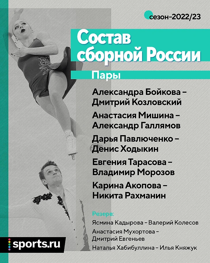 Ясмина Кадырова и Иван Бальченко, Алина Пепелева и Роман Плешков тоже могли бы претендовать на место в составе, но распались. Кадырова встала в пару с Валерием Колесовым – они начали кататься еще в апреле, так что хотя бы залетели на место в резерве.