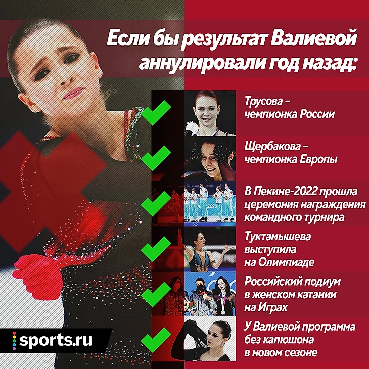 Если бы результат Валиевой аннулировали год назад: Туктик на Олимпиаде, Трусова с золотом командника, а сама Камила – без капюшона