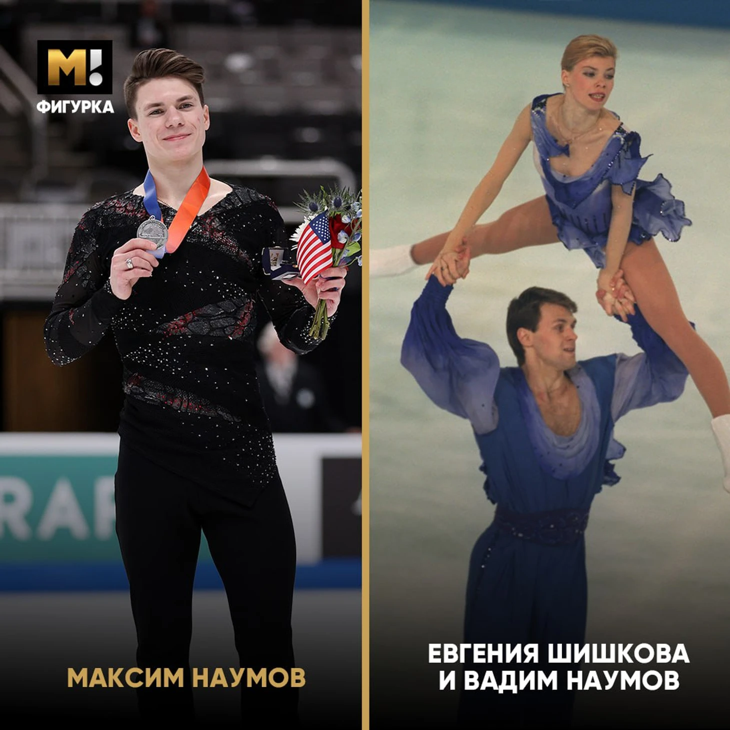 Максим Наумов - сын Вадима Наумова и Евгении Шишковой, которые стали чемпионами мира среди спортивных пар в 1994 году.