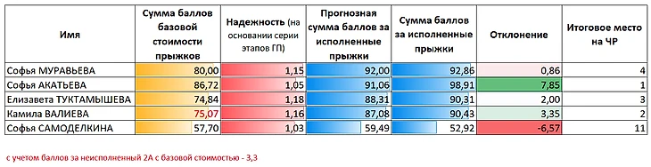 Во второй публикации был сделан более подробный рейтинг как по всем прыжкам, так и отдельно по прыжкам ультра-си - выделили Майю Хромых и Елизавету Туктамышеву, но к методологии составления рейтинга у читателей было много вопросов.
