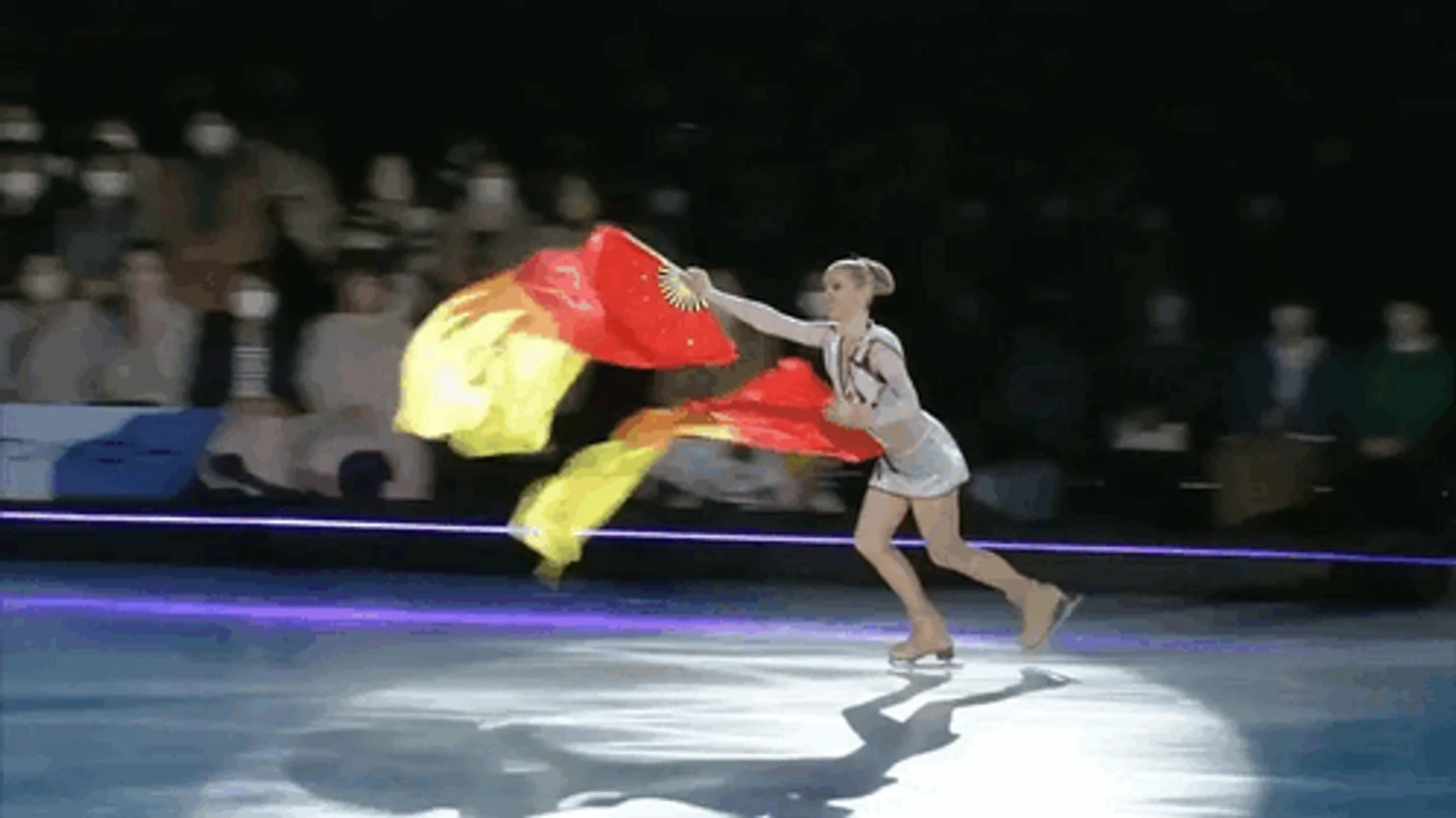 Далее последовал один из двух номеров-сюрпризов (00:42:57). Ну как сюрприз, Юзуру до шоу анонсировал «синергию фигурного катания и гимнастики», что намекало на общий номер со специальным гостем, коим являлся известный гимнаст Кохэй Утимура, но мне было сложно представить, как можно связать эти два вида. Оказалось можно, и вполне интересно. Некоторые части они выполняли по очереди, некоторые параллельно. Номер был поставлен под «Conquest of Paradise» Vangelis - саундтрек из одноименного фильма об открытии Христофором Колумба Нового Света. Песня хорошо легла на номер - пожалуй, непросто было подобрать музыку именно к гимнастике, фигурное катание-то вид гораздо более гибкий и способный подстроиться. Для справки, упражнения в гимнастике мужчины выполняют без музыкального сопровождения (в отличие от девушек, у них, например, вольные с музыкой), так что возможно Кохэю было непривычно. Со стороны фигурного катания первую часть (до появления Кохэя) поставил Дэвид Уилсон, остальное Юзуру. Для гимнастики консультантами выступали Рики Фудзимаки и Такая Усуда (источник: https://twitter.com/notte_2023/status/1635802855255973890).