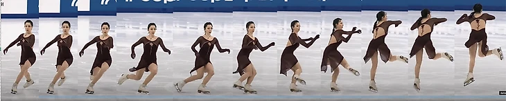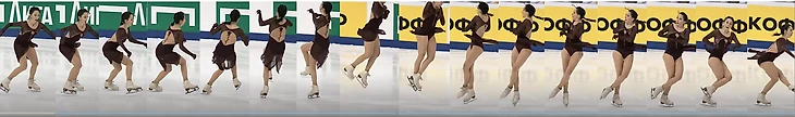 Лутц. У Елизаветы данный прыжок всегда был коронным и эталонным. Смотрим что получилось. Ребро отличное. Третий кадр и четвертый - реберное отталкивание. Эталонная техника с зубца улетучилась, отталкивание с ребра. Прер не большой, порядка 90гр.