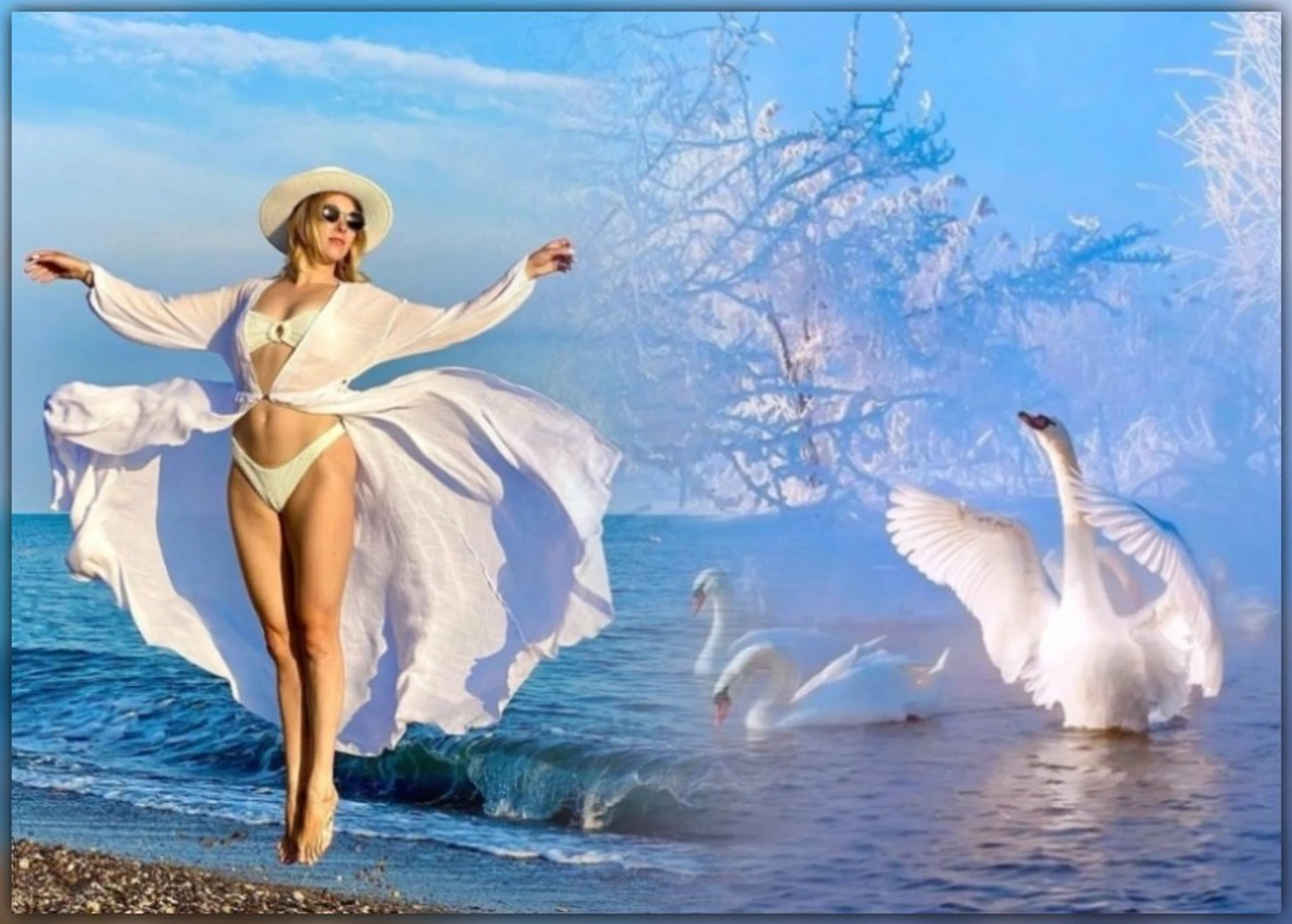 Уважаемые подписчики и читатели блога! Вашему вниманию – коллажи с отдыхающими на море фигуристами.