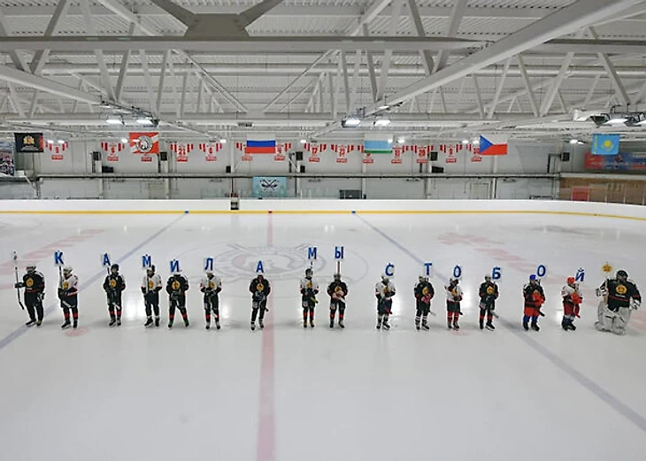 Воспитанники училищ, занимающиеся хоккеем, выходили на лед под музыку, звучавшую в программах Камилы. И прикрепляли к клюшкам буквы, складывая их в хэштег «Камила, мы с тобой».