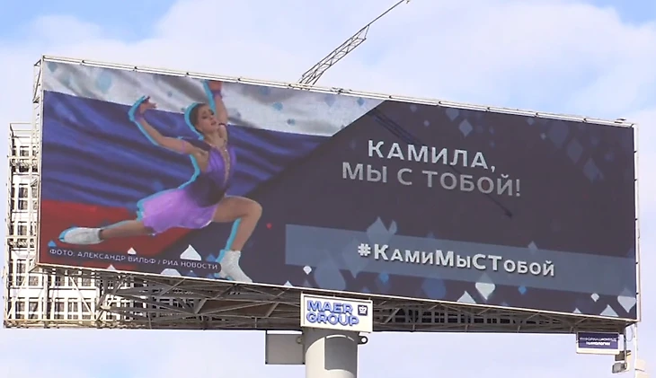 Во многих городах появились баннеры и плакаты с Валиевой. Огромные экраны в Москве:
