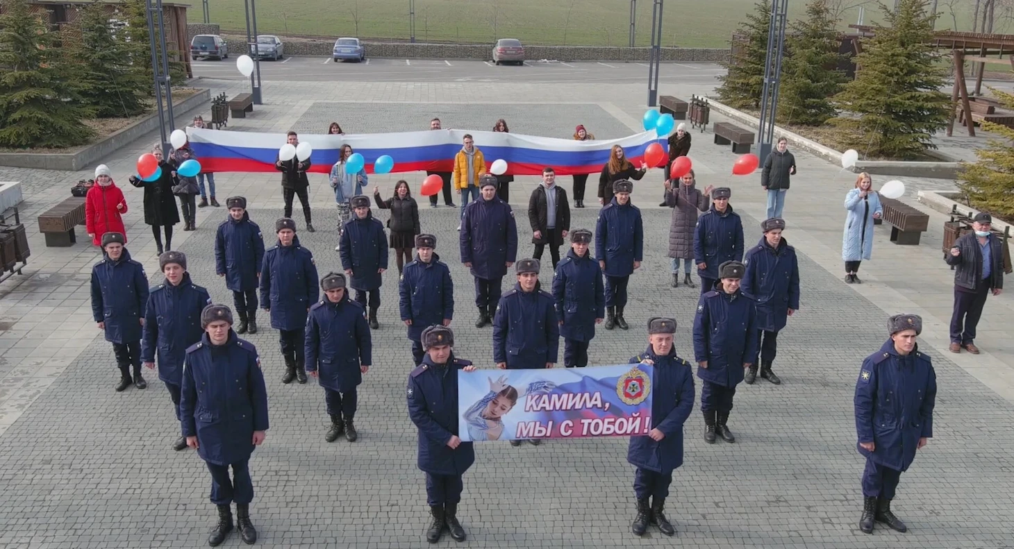 Военнослужащие Ростовской области развернули плакат с ее изображением и 10-метровый флаг России. Затем прокричали «Камила, мы с тобой» и отправили в небо бело-сине-красные воздушные шары с таким же хэштегом.