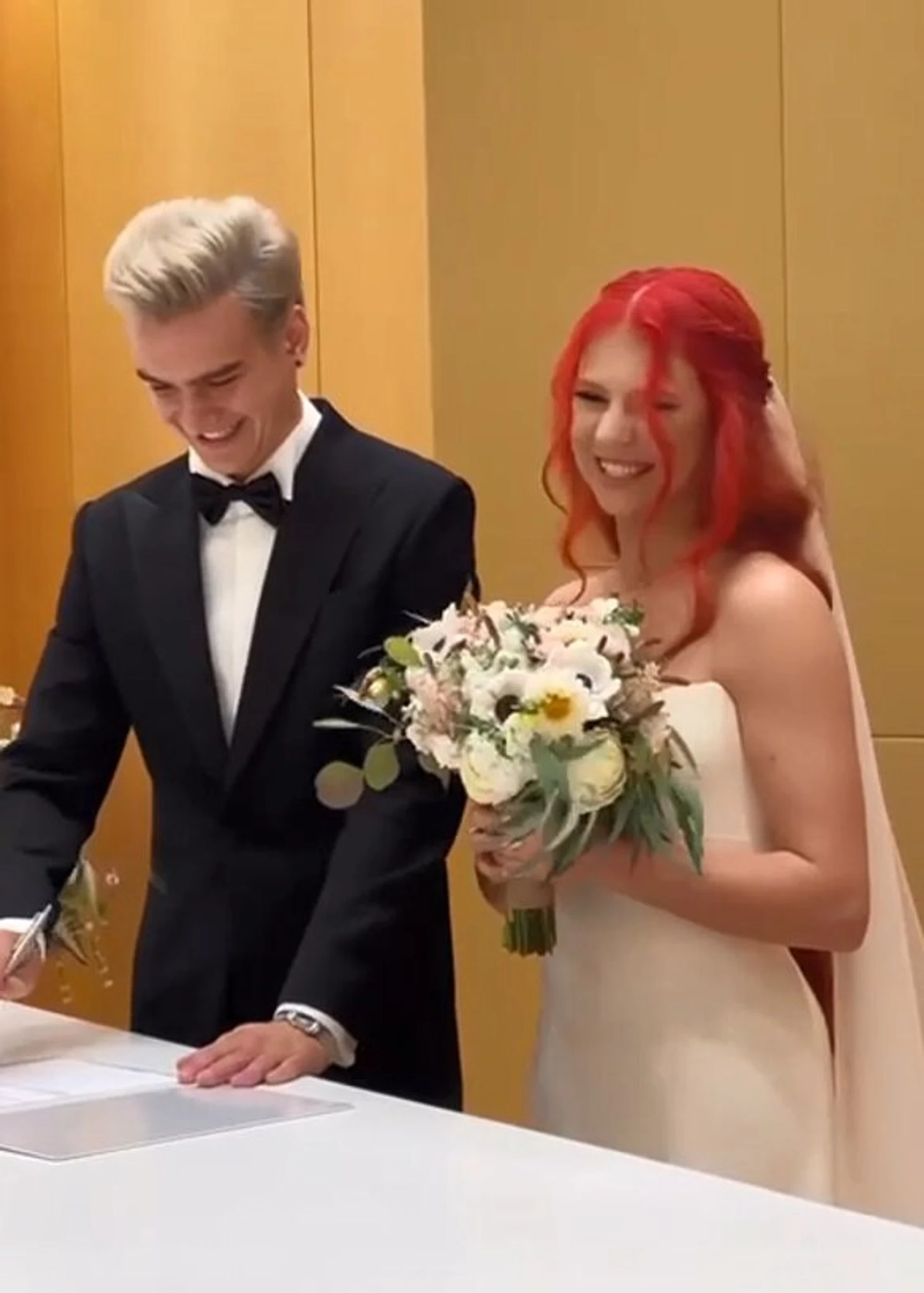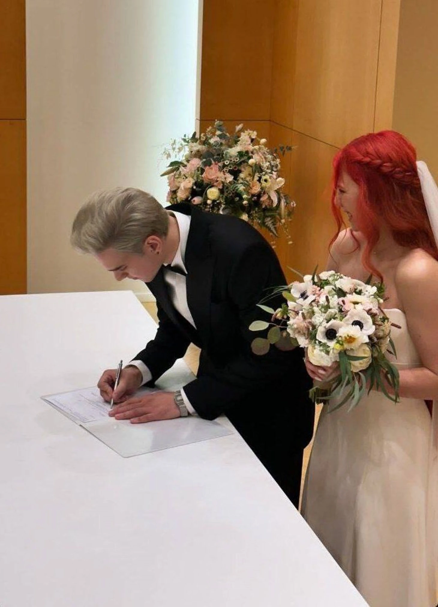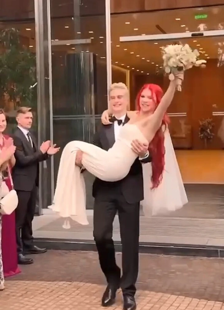 «Поздравляем красивых и счастливых Сашу Трусову – Русскую Ракету – Королеву четверных и вице-чемпиона России Макара Игнатова с их бракосочетанием.