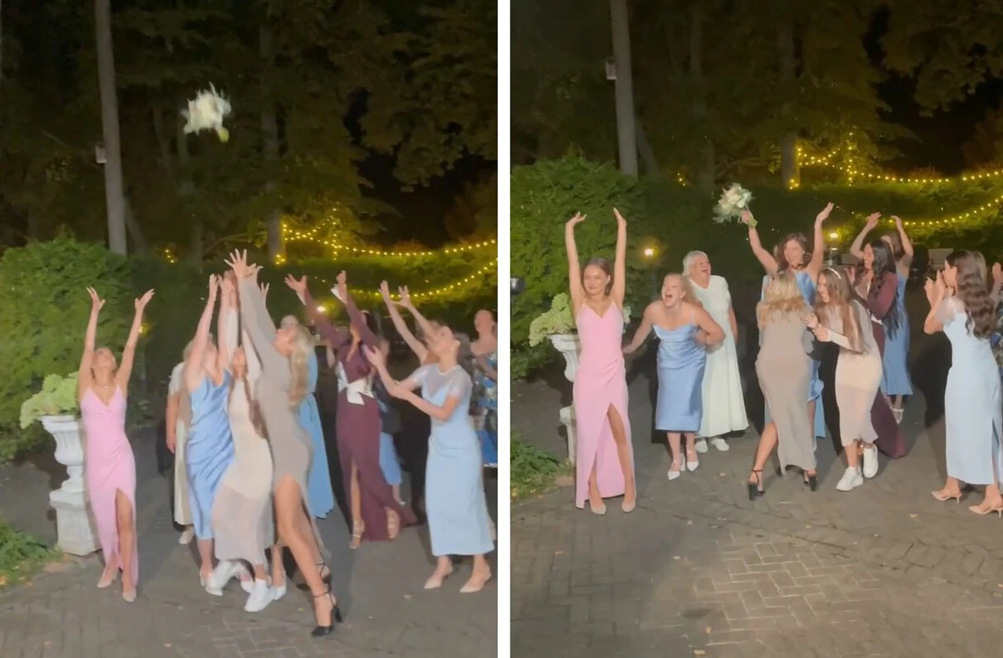 После танца с подружками невесты настало время кидать букет. Поймала его Софья Самоделкина – засмущалась и пыталась отдать то Щербаковой, то Левушкиной, но в итоге оставила себе.