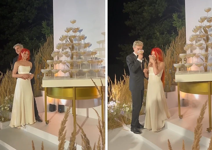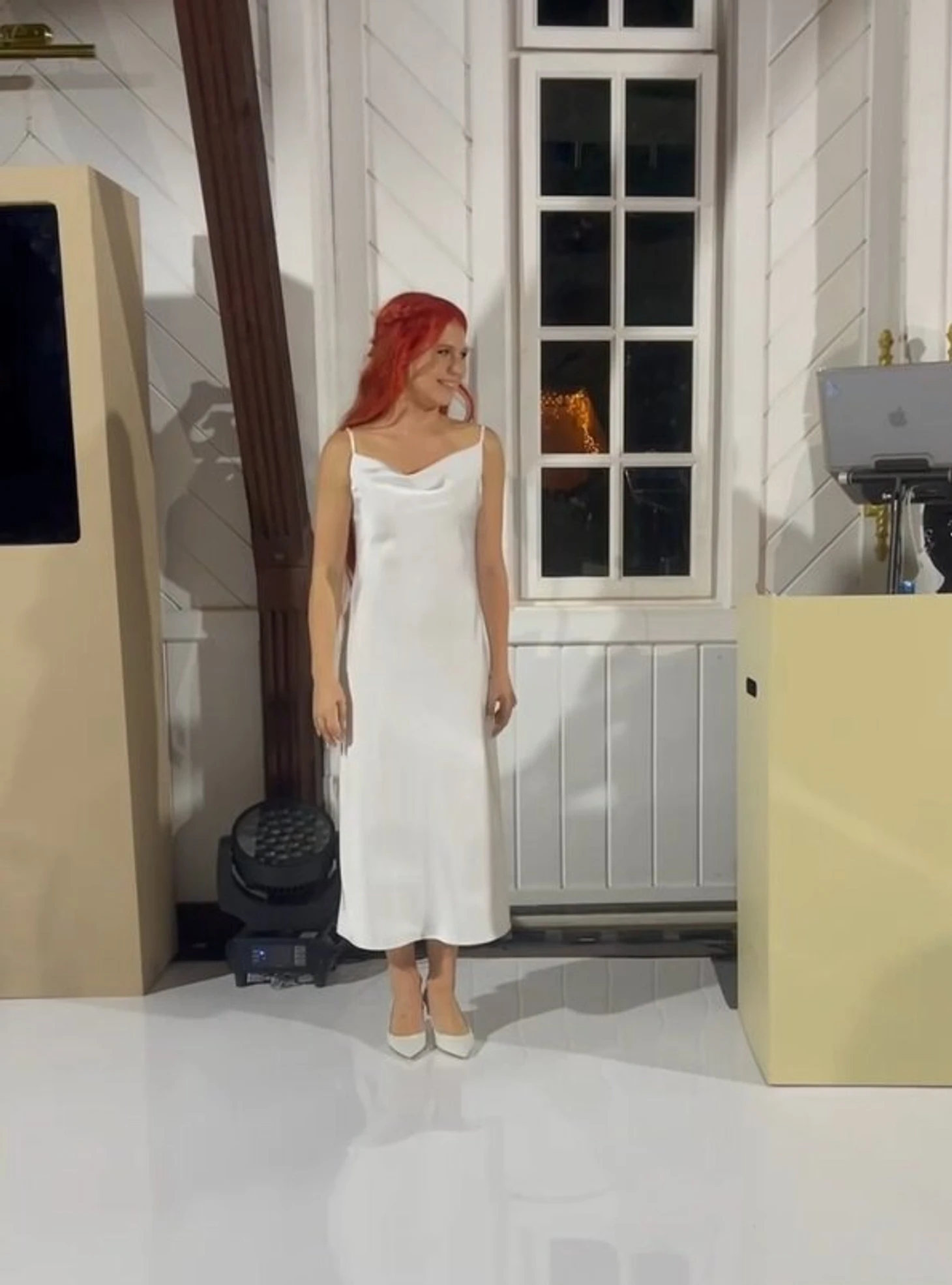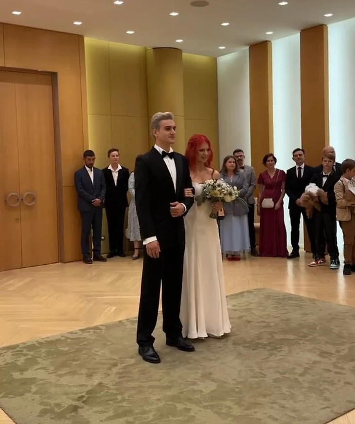Регистрация прошла в первой половине дня. Гостей немного – только самые близкие. Трусова надела первое платье дня: элегантное, с прямой юбкой в пол и открытыми плечами.