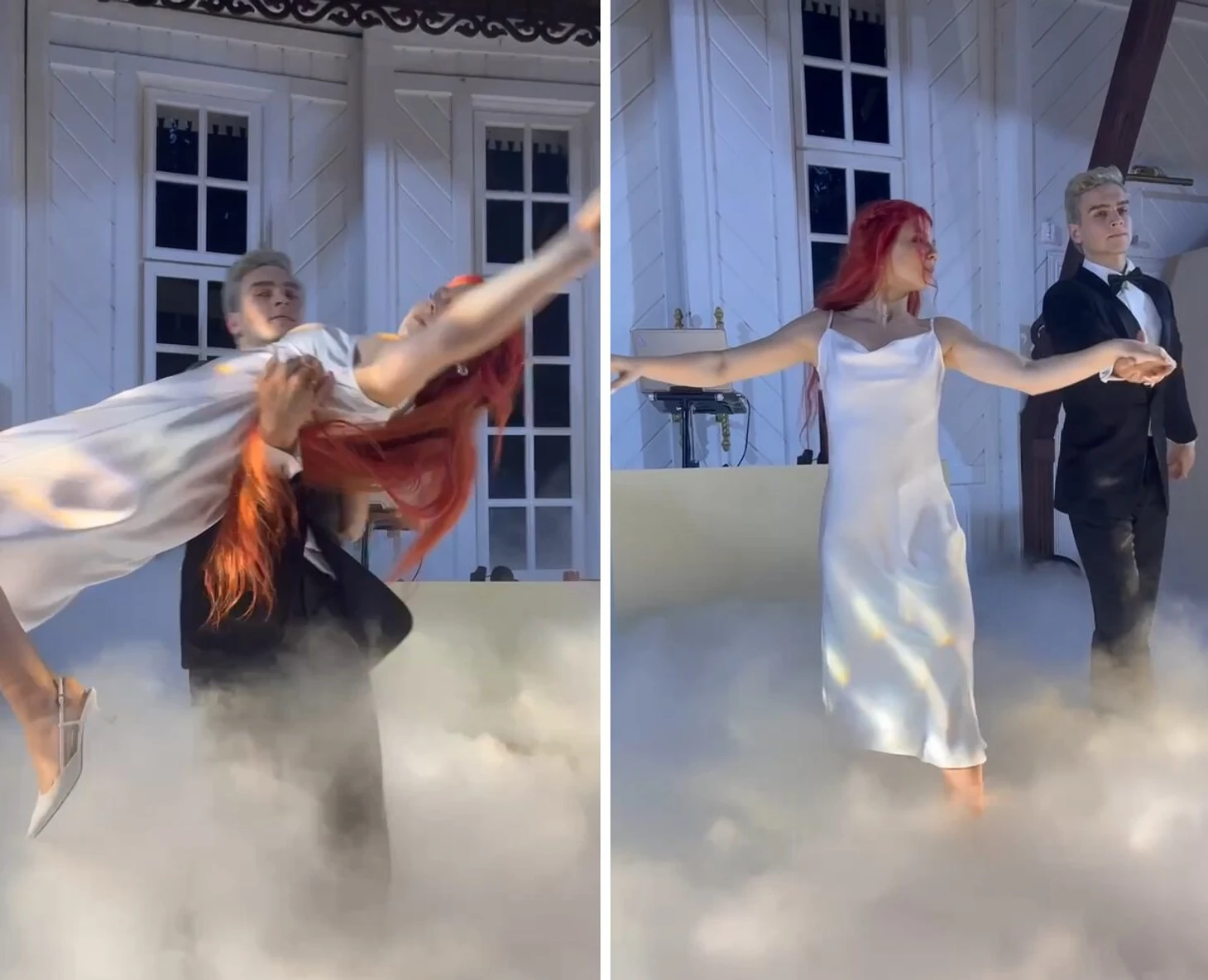Оно предназначалось для первого танца молодых, в который добавили несколько поддержек.