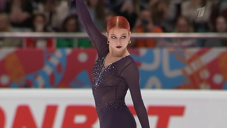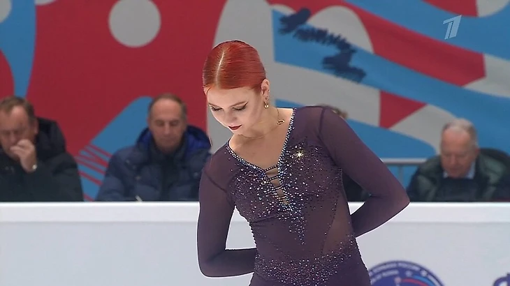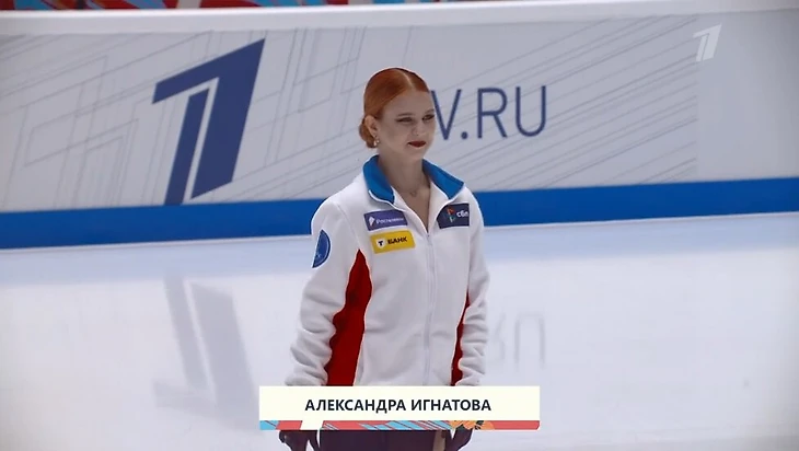 Ведущая Анна Щербакова (а потом и Максим Траньков в общении с болельщиками) сделала дополнительный акцент на фамилии: «Свою новую программу представит Саша Трусова... ой, извините, никак не могу привыкнуть – Александра Игнатова».