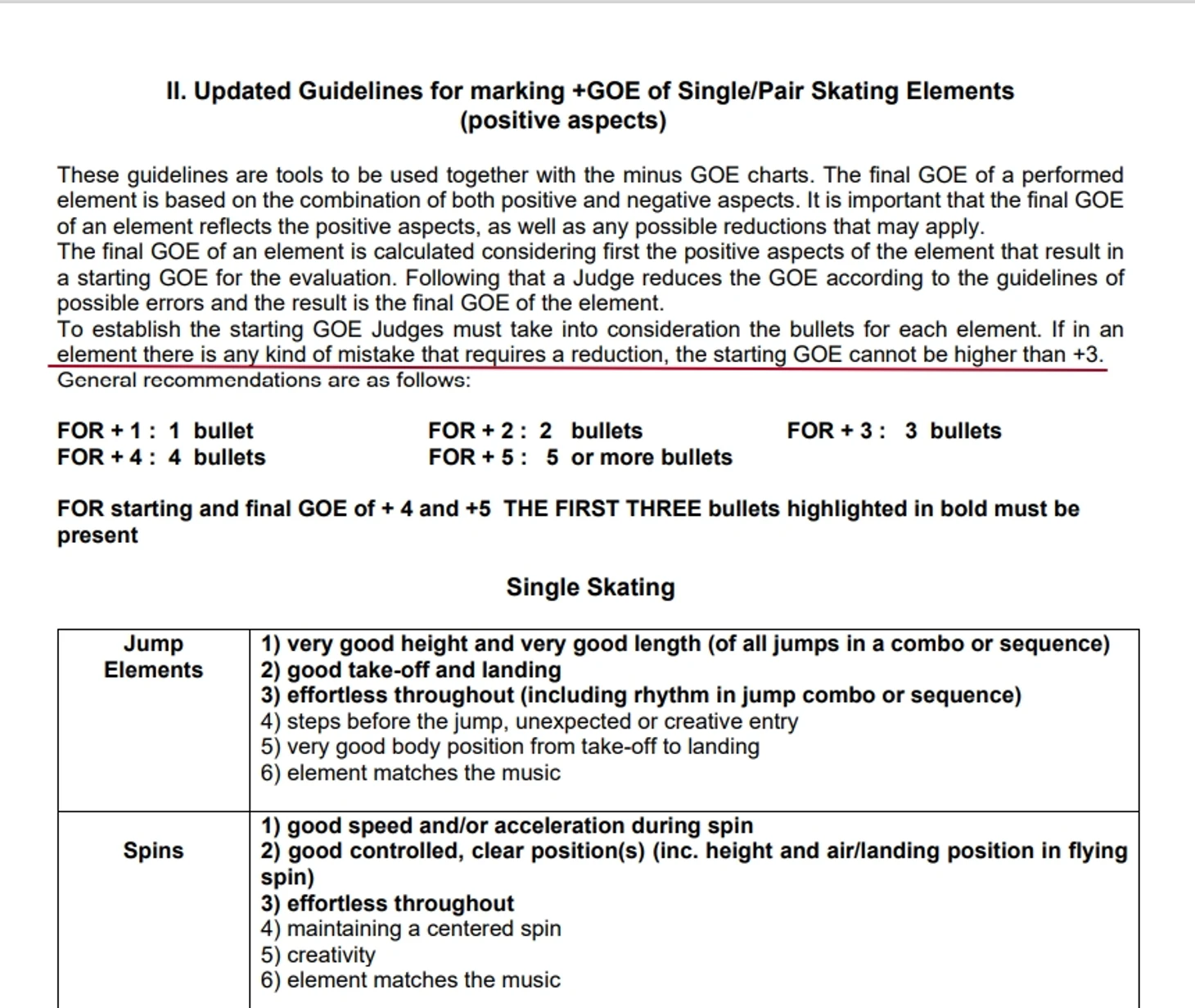 Красным подчеркнул: если на элементе допущена ошибка, требующая снижения, то стартовое ГОЕ не может быть больше +3.