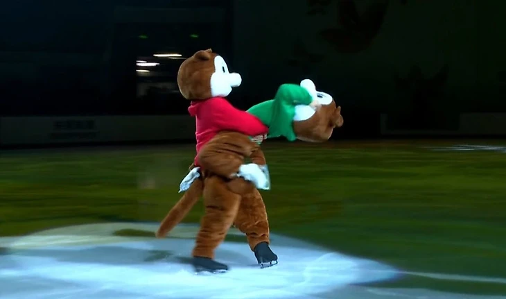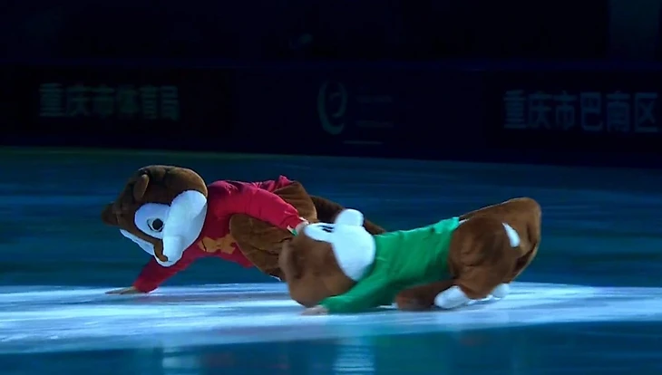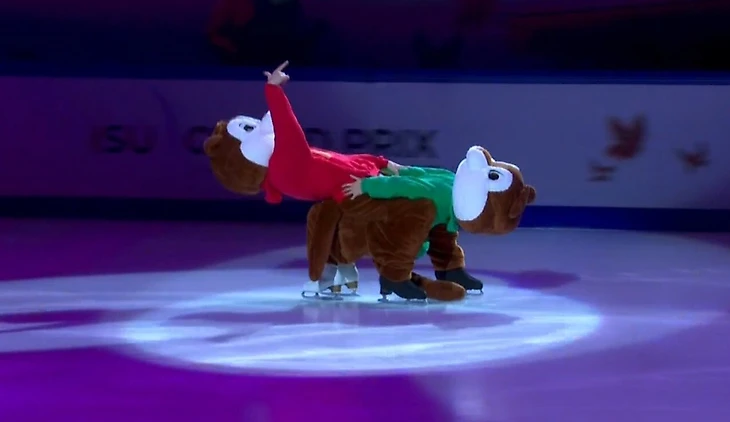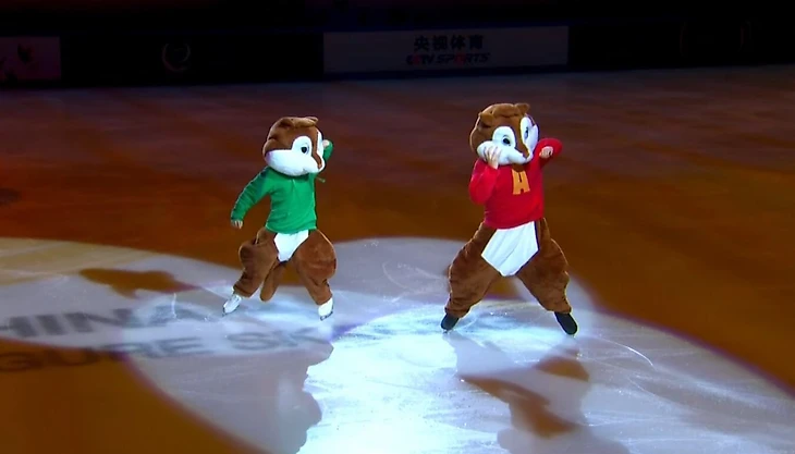 Диктор на арене объявил грузинскую пару, но Дэвис и Смолкин так и не показали лица. В ростовых костюмах бурундуков они провели весь номер.
