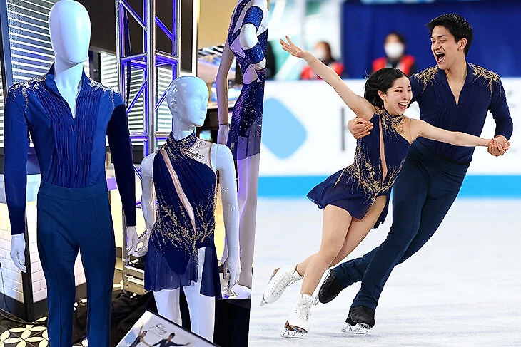 ● Японцы Рику Миура и Риючи Кихара в костюмах Кэрона впервые выиграли чемпионат мира. Синее с золотом – для короткой программы сезона 2022/23.