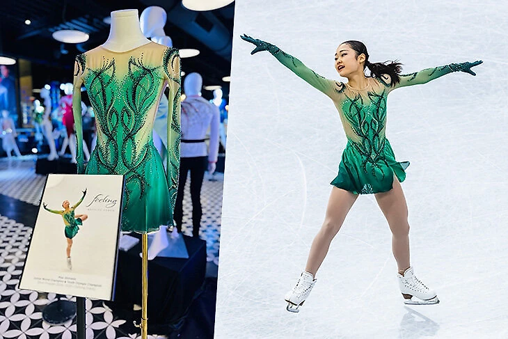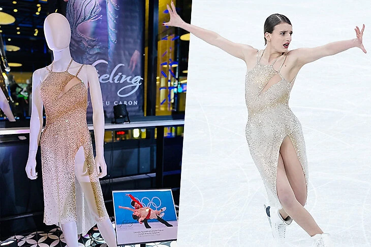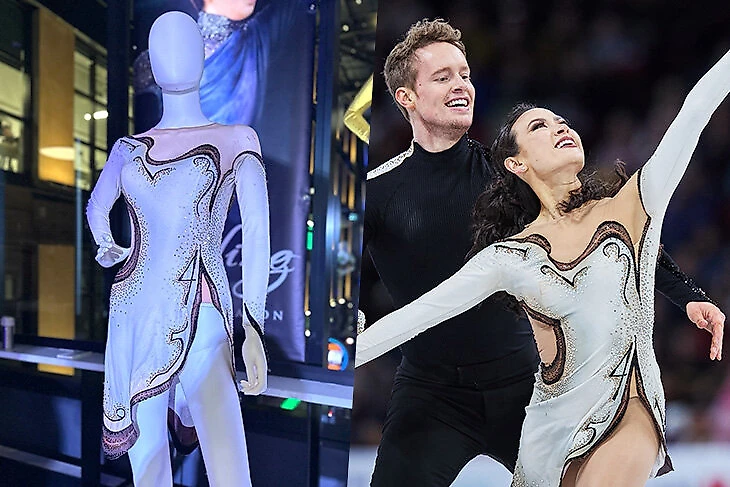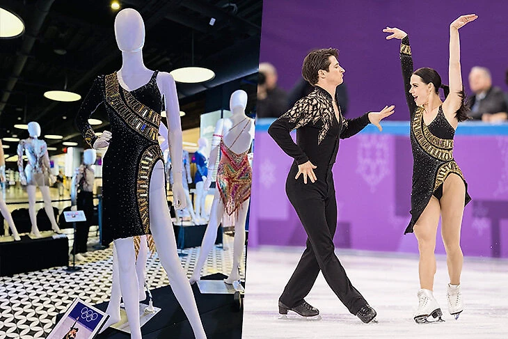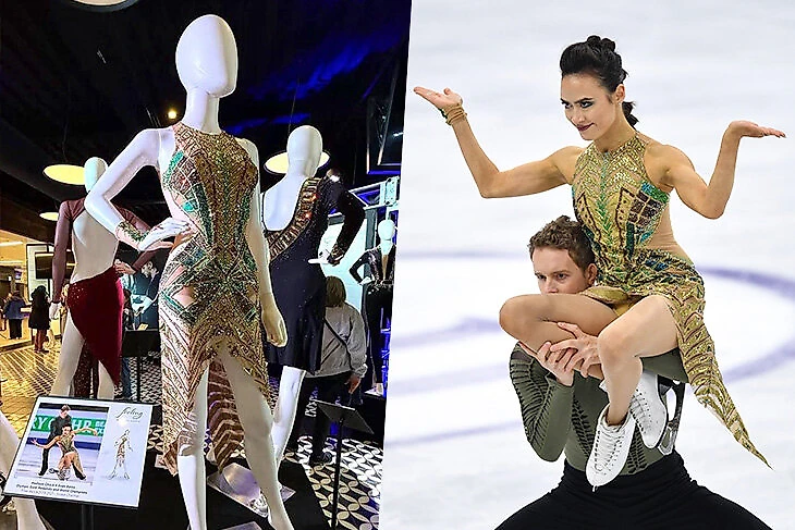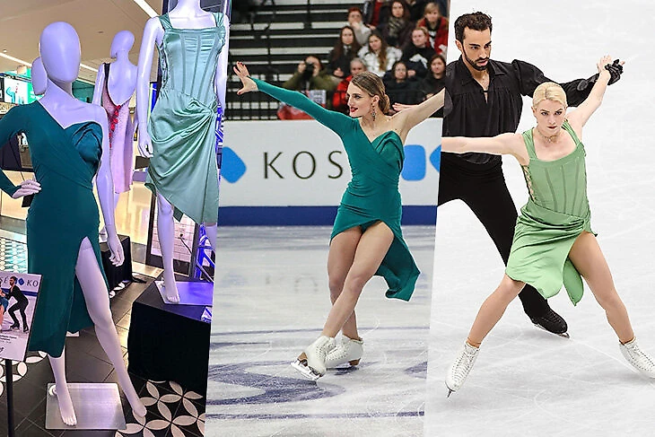 Светло-зеленое платье на манекене рядом – олимпийский «Зорро» испанки Оливии Смарт. В Пекине-2022 она выступала в паре с Адрия Диасом, а в Бостоне-2025 уже покорила всех «Дюной» с новым партнером – Тимом Диком.