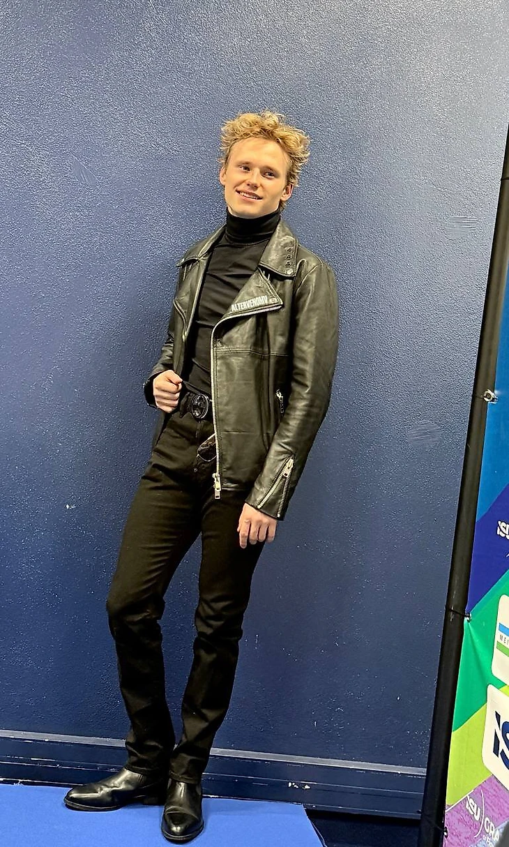 Уже перед короткой программой Малинин обратил на себя внимание: приехал на каток в Анже в образе тотал блэк. Водолазка, брюки с массивным ремнем, кожаная косуха и ботинки.