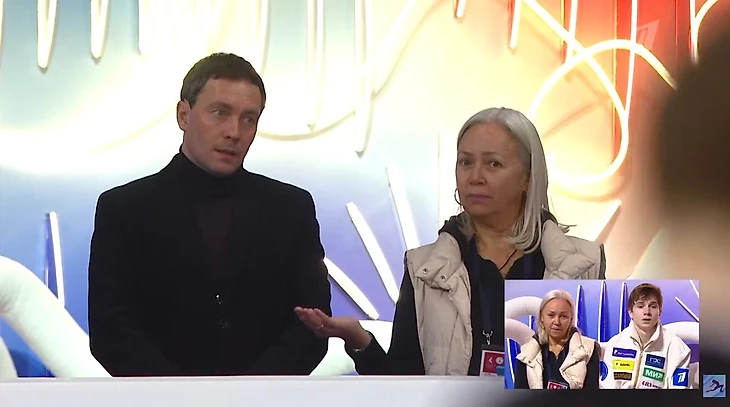 На повторе показали реакцию тренеров: Соколовская развела руками и многозначительно посмотрела на Станислава Захарова – тот покачал головой, мол «я ни при чем».