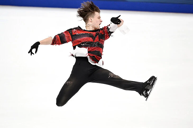 Евгений травмировал колено в сентябре и пропустил контрольные прокаты и первые этапы Гран-при. И вернулся мощно – с программой на песни Nirvana и дерзком костюме.