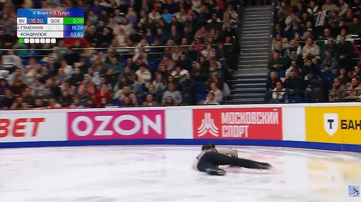 Для Гуменника это тоже первый старт в российском сезоне (до этого сгонял только на олимпийскую квалификацию в Пекин), и Петр неожиданно дрогнул.