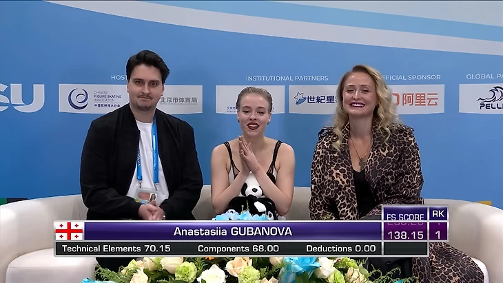 Анастасия в своей короткой программе снова обращается к индийским мотивам, на этот раз под саундтрек к фильму «Ашока» «San Sanana» – тот самый, что стал популярным, благодаря тренду в соцсетях с макияжем в индийском стиле. В программе Анастасия смотрится максимально ярко и привлекательно, но хочется видеть чуть больше дерзости. В активных частях под «Jogi» от Panjabi MC она всё ещё кажется чрезмерно сдержанной.