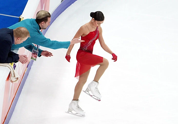 В том числе не удержала тройной лутц, допустила падение. Мне кажется, это какая-то карикатура на все наше мировоззрение. Вы так хотели ультра-си? Вот вам ультра-си. С таким же успехом можно было кружок в телеграме записать, где она прыгает два квада: хоть в кроссовках, хоть в тренажерном зале, хоть на даче. Это очень странные вещи. Это сопоставимо с легендарным прокатом Плющенко в лесу.