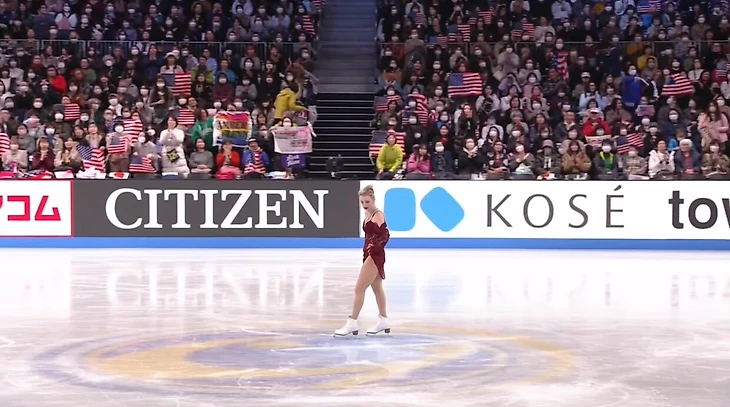 Американка после проката не плакала, но перед поклоном внимательно посмотрела в след от конька, который оставила при заходе на триксель. В этом причина сбоя?