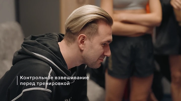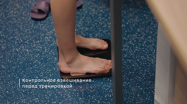 Забавная сцена – контрольное взвешивание перед тренировкой: девочки по очереди становятся на весы, Даниил Глейхенгауз все записывает.