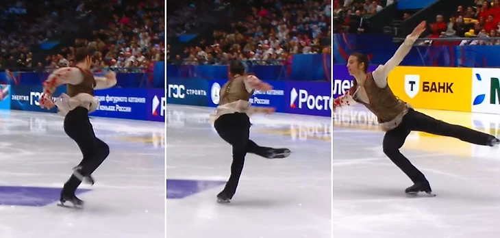 Единственный сбой в короткой – недокрут на галку (от четверти до половины оборота) на четверном лутце. Его видно на приземлении невооруженным глазом.