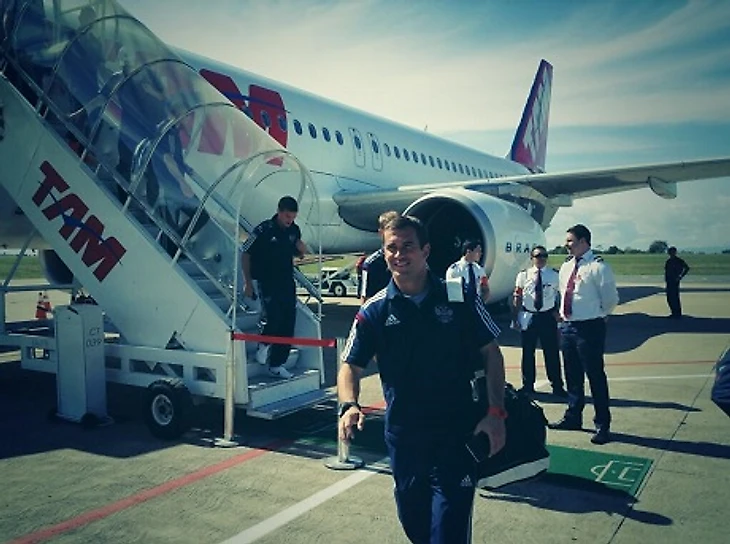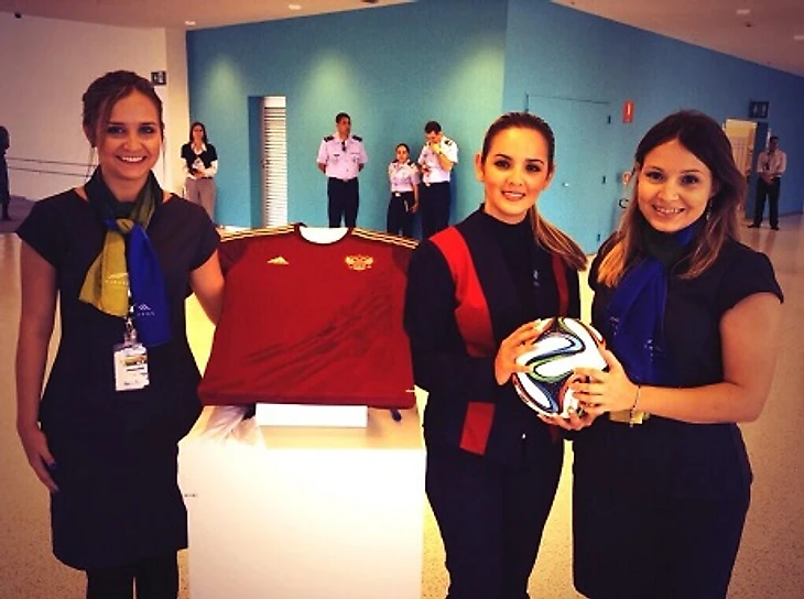 Футболисты и тренерский штаб сборной России из аэропорта Кампинаса прилетели в Куябу.