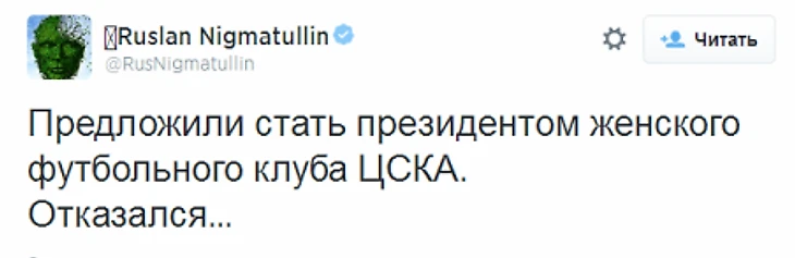 Отказался…», – написал Нигматуллин в своем твиттере.