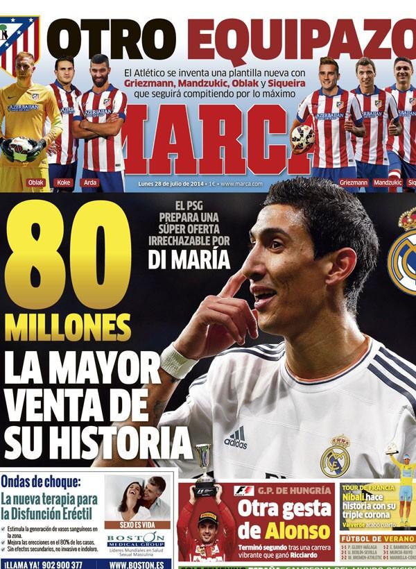 Таким образом, переход Ди Марии в «ПСЖ» может стать самой крупной продажей в истории мадридского клуба. В настоящее время рекорд принадлежит полузащитнику Месуту Озилу, который год назад перешел из «Реала» в «Арсенал» за 50 миллионов евро.