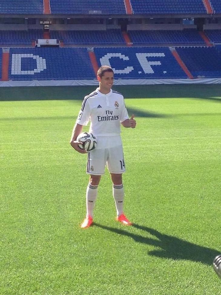 20:39 Тем временем Хавьер Эрнандес представлен на «Сантьяго Бернабеу»: