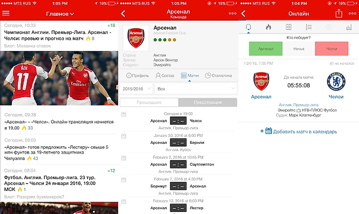 Матч «Арсенал» – «Челси» в клубных приложениях от Sports.ru